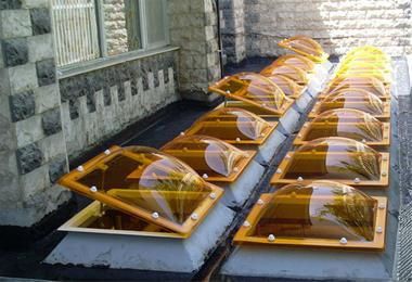 نورگیر های حبابی( کوپل )ازجنس پایه فایبر گلاس مسلح به رزین پلی استر وحباب که ازجنس ورق اکرولیک می باشد و نورگیر های تونلی،گنبدی،شیبدارو قوس داریک یادوطرفه،هرمی و...که اجرای اسکلت باپروفیل آهن صاف ونوردشده 40*40،40*80،80*80و...صورت گرفته وجنس پوشش روی اسکلت فلزی ازورق های پلی کربنات ها ، نورگیرهای دوجداره و یا چند جداره وورق پلی کربنات ها فلت یاتخت ویاورق اکرولیک می باشد